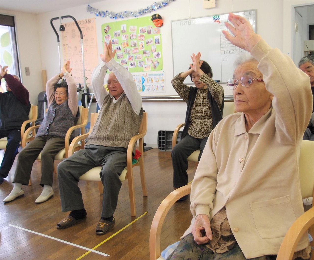 足の筋力が弱くなり車椅子を使っていた方がデイサービスでの継続的な運動によってまた歩くことができるようになるなど、ひとりひとり目的をもって日々の運動を楽しんでいます。