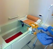 入浴用車いす、浴槽リフトもあるので車いすで移動される方もゆったりと浴槽に入ることができます。